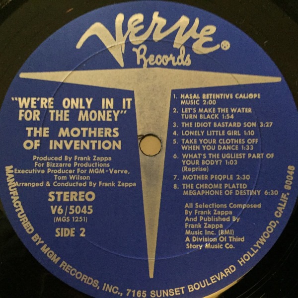 The Mothers of Invention: WE’RE ONLY IN IT FOR THE MONEY (Verve Records, US, cassette tape w/ sides 1 & 2 reversed, 1968)