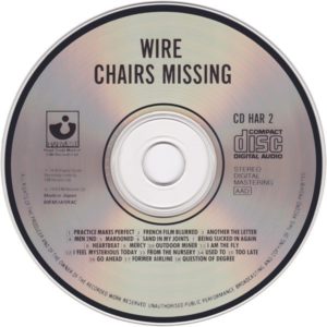 Wire: CHAIRS MISSING (Harvest/EMI, UK, compact disc reissue w/ 3 bonus cuts, 1987)