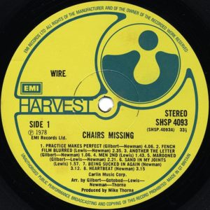 Wire: CHAIRS MISSING (Harvest/EMI, UK, LP, 1978)