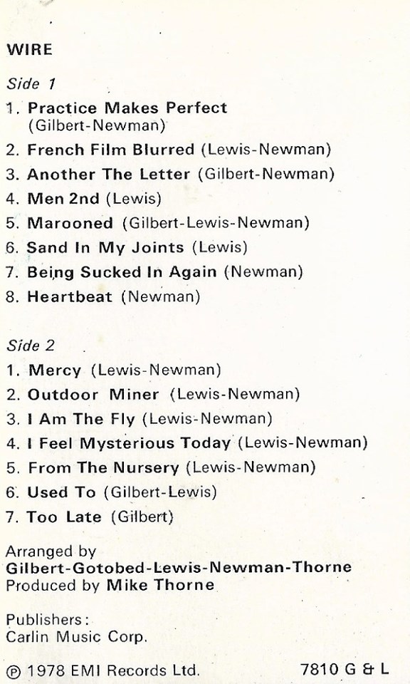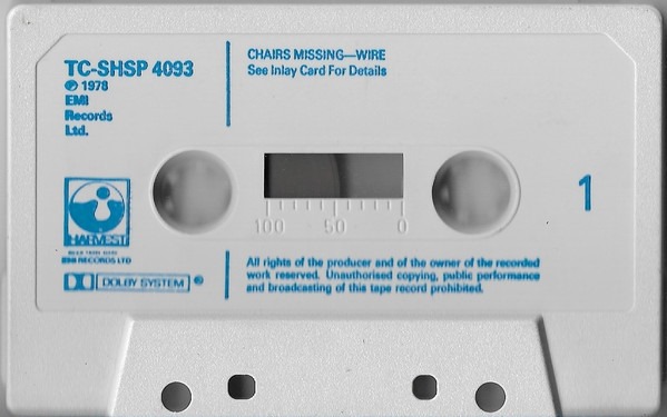 Wire: CHAIRS MISSING (Harvest/EMI, UK, cassette tape, 1978)