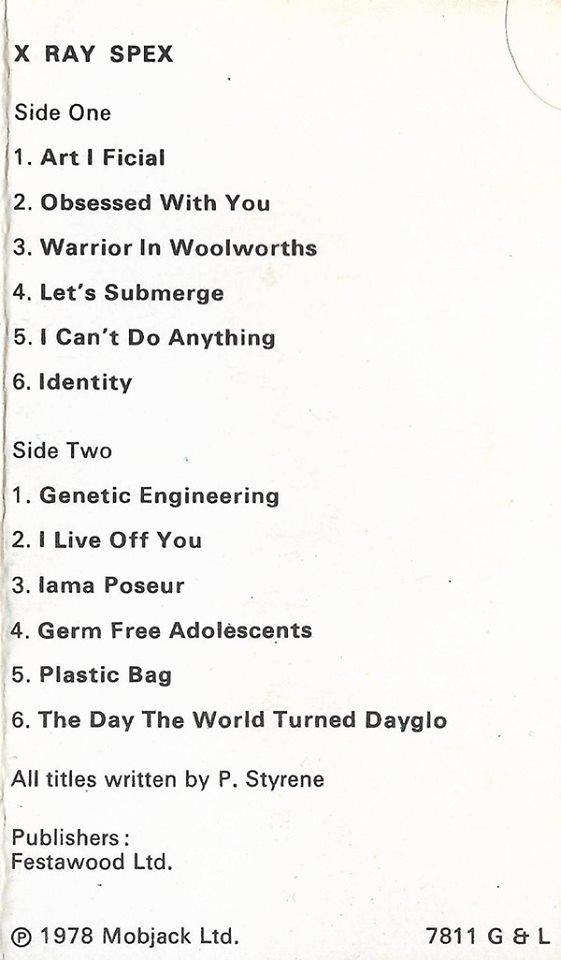 X-Ray Spex: GERMFREE ADOLESCENTS (EMI International Records, UK, cassette tape, 1978)