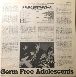 X-Ray Spex: GERMFREE ADOLESCENTS (EMI Records, Japan, LP, 1978)