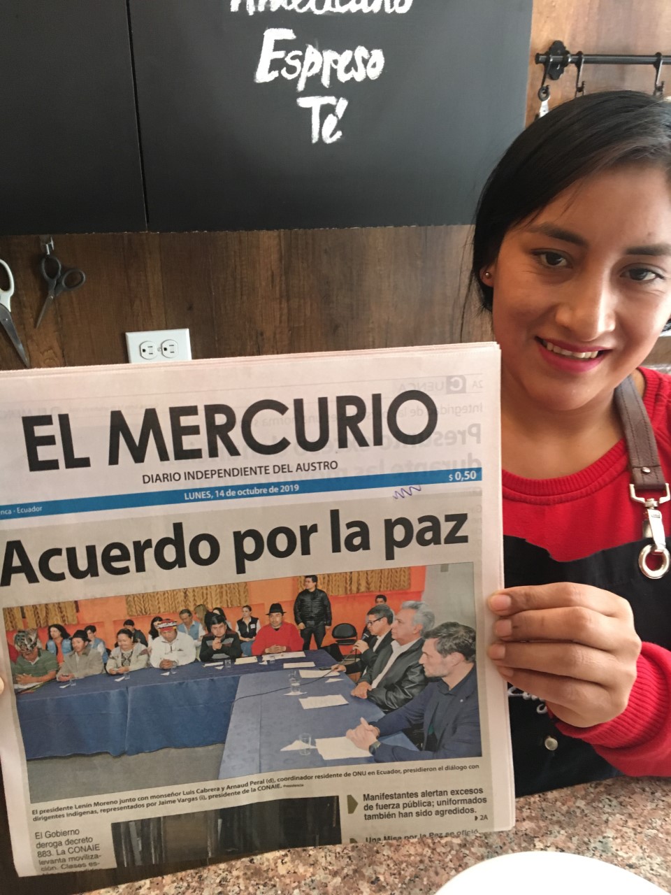 The burning first starts in the throat, accompanied by a strange, metallic taste when swallowing. The nose, then starts to flange and burn, as the tear gas (which is actually not a gas, but an aerosolized solid or liquid compound) synges the cilia inside. Sneezing eventually sets in followed by wet, weeping eyes. Depending on how much of the gas one is actually exposed, incessant coughing can occur, and in more severe cases, difficulty breathing, eye pain and temporary blindness. Fortunately, I caught sight of a coffee shop pulling down the metal window covers and was able to duck inside, with about 10 others, before the doors were closed and locked. That was day #1 of the 12 days of violent protests in Ecuador, which were the catalyst for the Latin Spring of 2019.