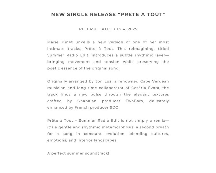 Music Marie Minet – “Prête à Tout” – Summer Radio Edit By admin on Friday, July 4, 2025 Marie Minet Previous Post Next Post Related Posts Music Barbara Mandrell – “Standing Room Only,” by Steve Hoffman Music News Remembering Midnight Oil Drummer Rob Hirst, by Steve Stav Music Captain Sensible – One Christmas Catalogue, by Steve Stav
