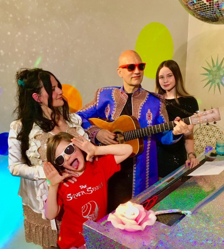 The Silver Snails are an independent pop rock music project based in the medieval wine country of Romagna, Italy, with strong ties to the West Coast (USA). Anchored by the husband-and-wife duo of Lucas Ward and Elisa Fantini, their mission is to open human hearts through song. Describing themselves as a glam rock space pop family band, The Silver Snails draw from a diverse palette of musical influences including classic rock, pop, folk, electronica, Irish, jazz, Nigerian, Qawwali, Asian folk music, and more. The couple’s 3 children, Jasmine, Celeste and Elias participate actively in live performances, videos, and in the recording studio, having grown up ‘in the band’. The project is supported by a large community of family, friends, fans, artists, musicians and supporters.
